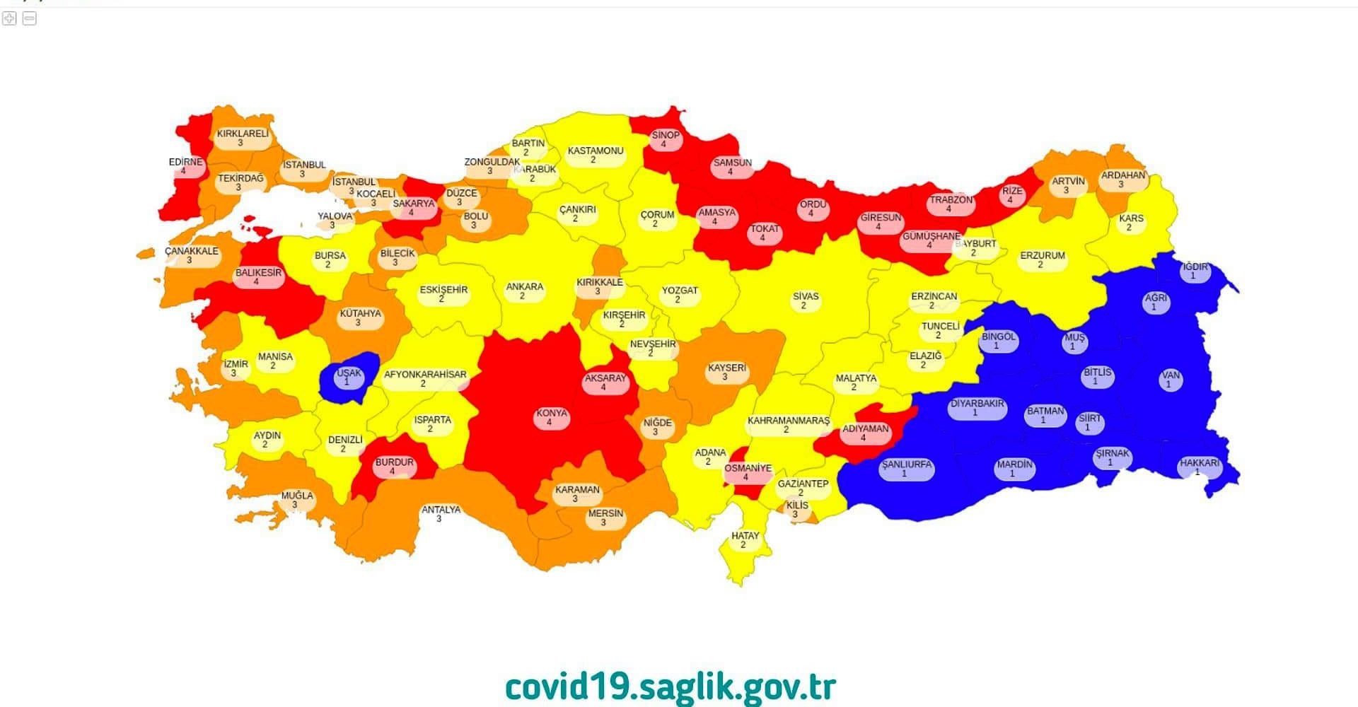 Conform noilor reglementări publicate la data de 1.03.2021, în Republica Turcia provinciile au fost împărțite pe zone în funcție de numărul de cazuri de persoane infectate cu Covid 19.