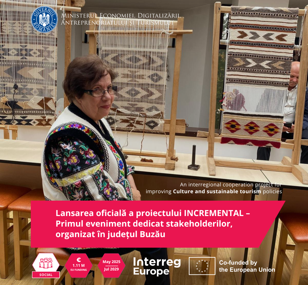 În perioada 06-07 octombrie 2025, în județul Buzău, a avut loc prima întâlnire a părților interesate în cadrul proiectului „Patrimoniu cultural imaterial și dezvoltare – Comunități, salvgardare și reziliență” – INCREMENTAL. Evenimentul a fost organizat de Ministerul Economiei, Digitalizării, Antreprenoriatului și Turismului, prin Direcția Generală de Turism, cu sprijinul Consiliului Județean Buzău.