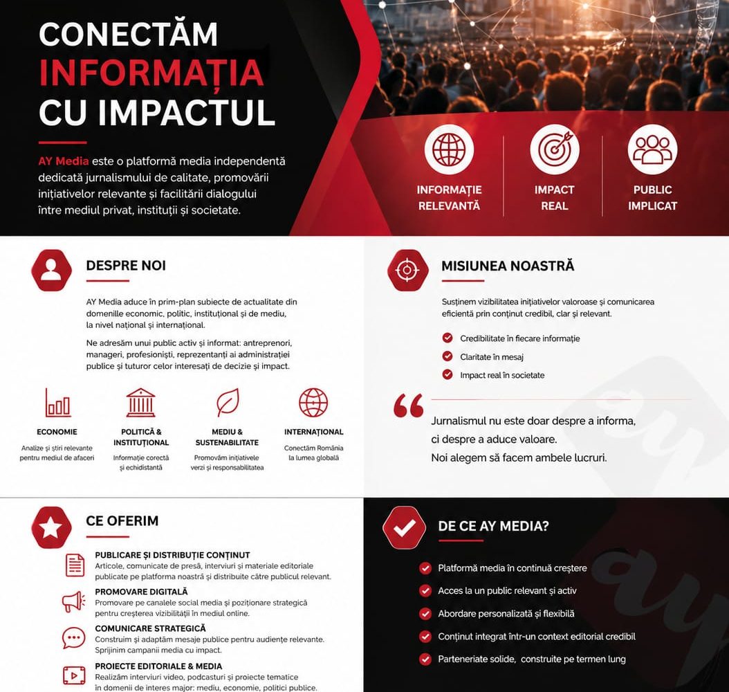 Diverse AY MEDIA – CONECTĂM INFORMAȚIA CU IMPACTUL 28/04/20260 Related tags : AY MEDİA informatie institutii Navigare în articole Previous Article Precizări privind informațiile false propagate online referitoare la pășunat și zonele prioritare pentru biodiversitate