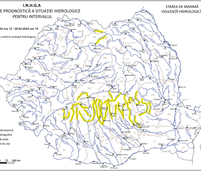 Ca urmare a precipitaţiilor prognozate, cedării apei din stratul de zăpadă din zona montană ȋnaltă şi propagării, hidrologii I.N.H.G.A. au in